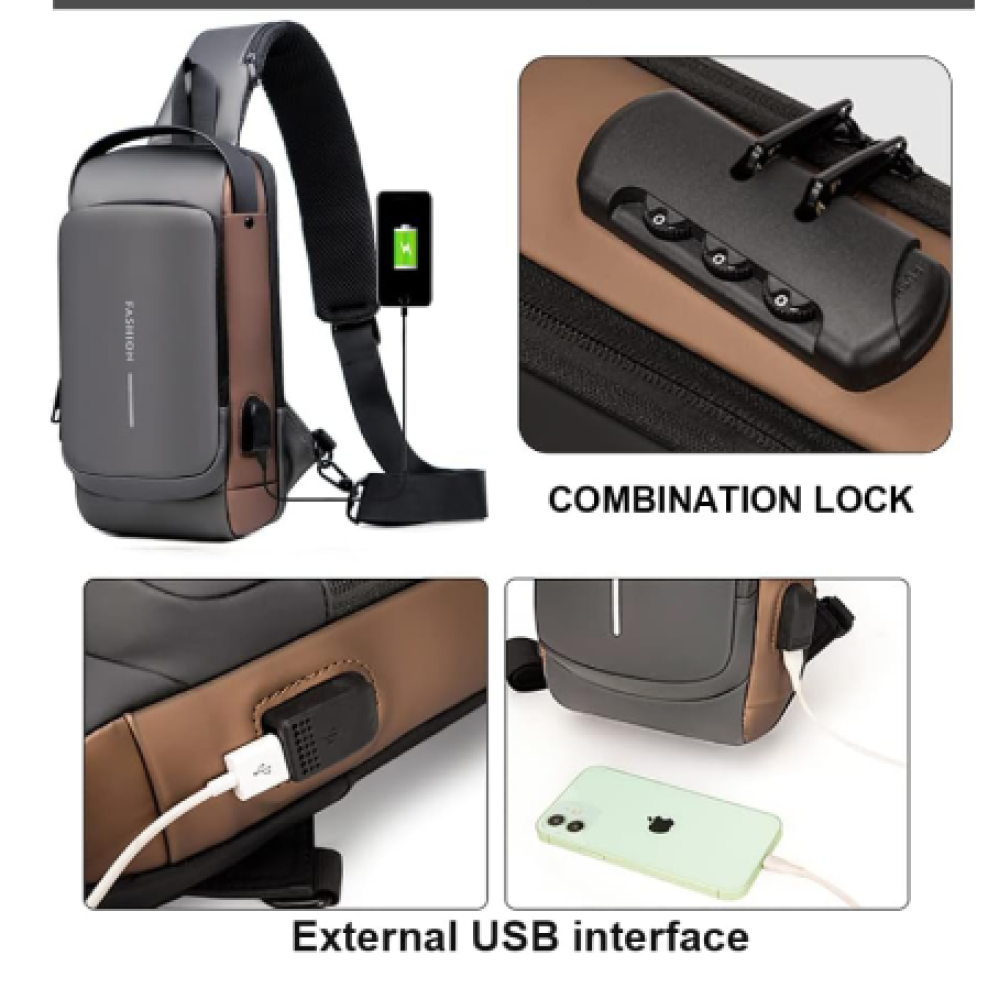 حقيبة كتف خفيفة الوزن مزوده بمنفذ شحن USB، مناسبة للأجهزة الذكية المختلفه وغيرها من الضرورات اليومية، ذات سعة تخزينية رائعة، مناسبة للرحلات والسفر وطلاب الجامعة.