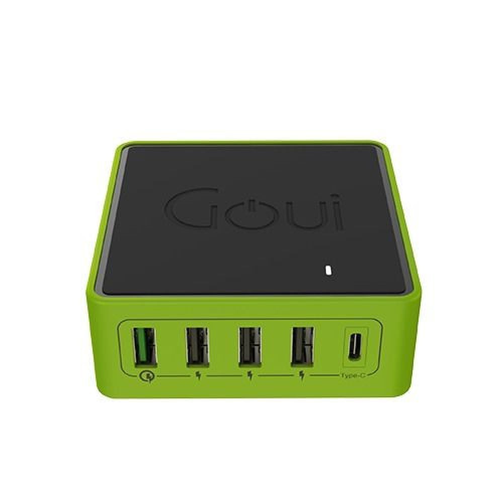 شاحن مكتبي فيه 5 منافذ يو اس بي منفذ يو اس بي بتقنية الكوالكم للشحن السريع لجوالات الاندرويد و3 منافذ يو اس بي شحن ومنفذ تايب سي بتقنية ال بي دي للشحن السريع لجوالات الايفون