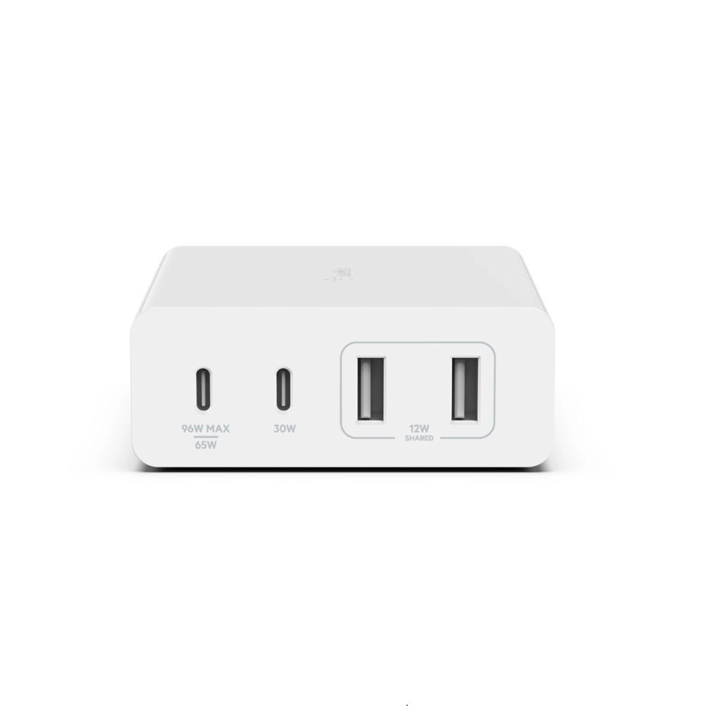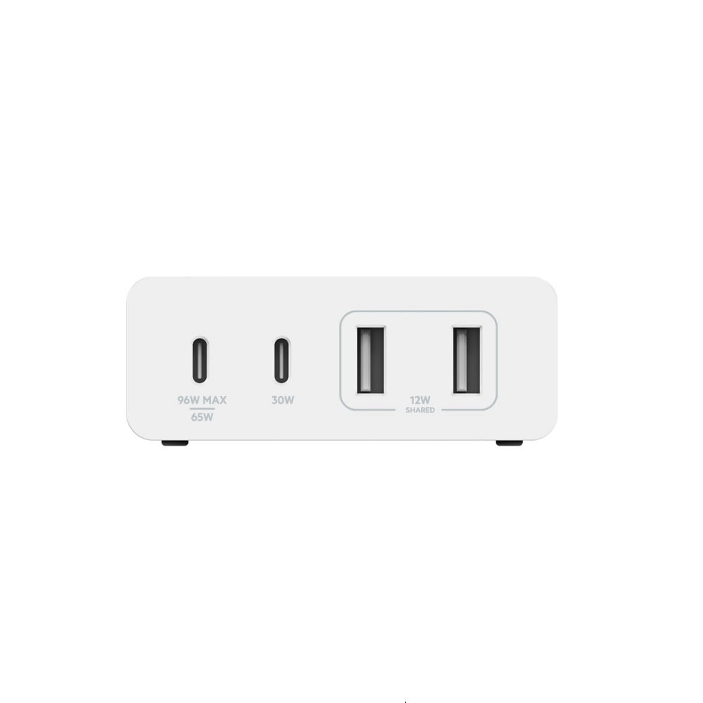 يتميز بتقنية GaN المتكاملة لتجربة شحن عالية القوة وآمنة وفعالة. طاقة مجمعة تبلغ 108 واط لشحن ما يصل إلى 4 أجهزة متوافقة من خلال منفذي USB-C و 2 USB-A.