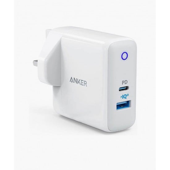 شاحن جداري أنكر باور بورت بقوة 35 واط بمنفذين USB-C و USB-A - أبيض